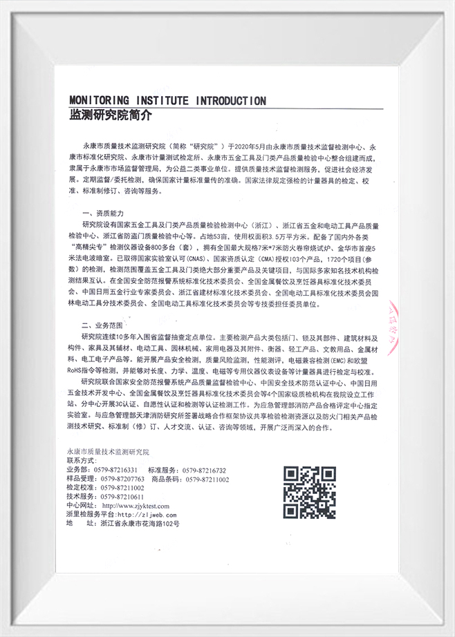 • Instituto de Investigación de Monitoreo de Calidad y Tecnología de la Ciudad de Yongkang